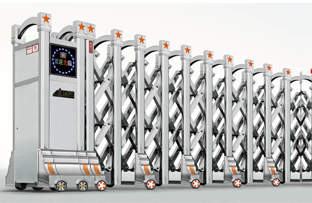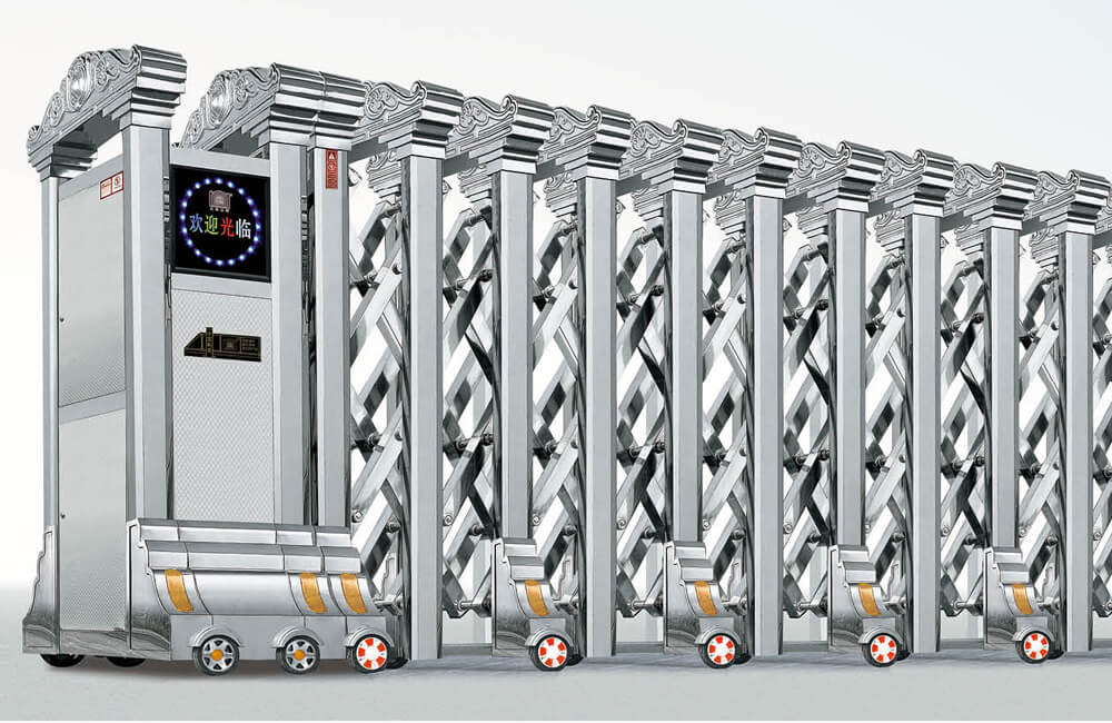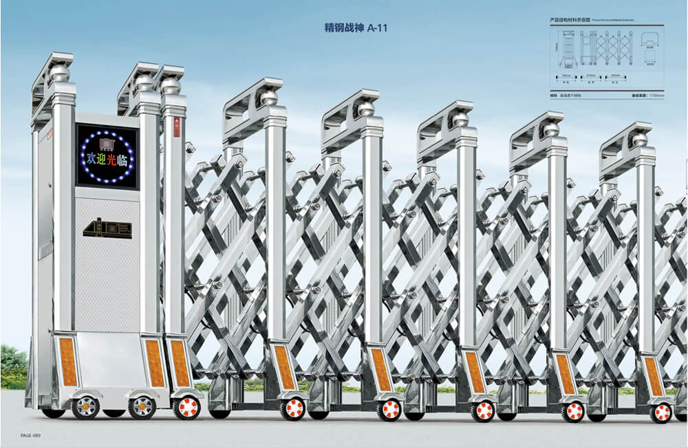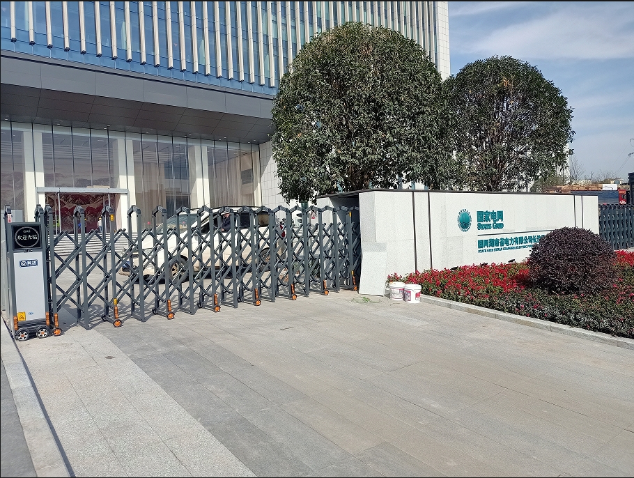 動伸縮門主要有伸縮門體、機頭、控制器三部分組成。